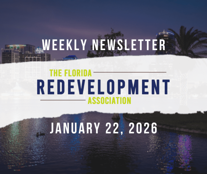 1/22/26 FRA Newsletter Highlights: FRA Academy – CRA 101 on February 20 FRA Award Showcase: Omni CRA Redevelopment FRA Member News clips from: Sebring CRA, Margate CRA, City of New Port Richey CRA, High Springs CRA, and more linked articles Job listings: Principal Site Planner – Palm Beach County Assistant Director – Main Street DeLand…